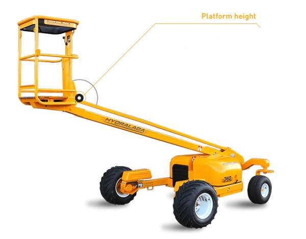 nThe 360h Hi Lift has the same low profile chassis as the 300h Compact but has a longer boom to give the operator more lift height and better reach into the tree.